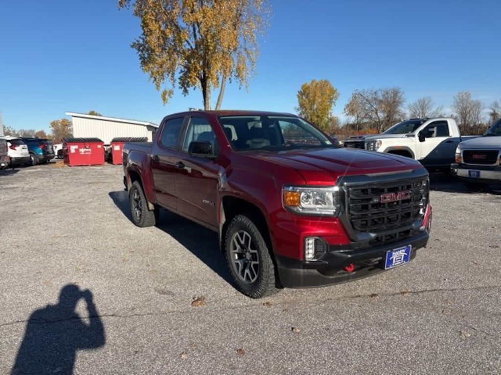 Recent Arrival!Clean CARFAX.Locally Purchased, 4WD, 4-Way Power Front Passenger Seat Adjuster, 6-Speaker Audio System Feature, Apple CarPlay/Android Auto, Automatic temperature control, Black Spray-On Bedliner w/GMC Logo, Driver 6-Way Power Seat Adjuster, Exterior Parking Camera Rear, Front fog lights, Fully automatic headlights, Heated door mirrors, Heated front seats, Heated Steering Wheel, Hitch Guidance, Leather-Appointed Seat Trim, Power door mirrors, Preferred Equipment Group 4SB, Premium audio system: GMC Infotainment System, Radio: AM/FM w/8 Diagonal Multi-Touch Display, Rear window defroster, Remote keyless entry, SiriusXM Radio, Steering wheel mounted audio controls, Tow/Haul Mode, Trailering Package, Wheels: 17 x 8 Dark Argent Metallic.*PASSED - Multi Point Safety & Mechanical Inspection. *Qualifies for a 6 month/6,000 mile Limited Powertrain Warranty w/ a 10% deductible for the first 3 months/3,000 miles and then a 50% deductible for the remainder of the warranty.2021 GMC Canyon AT4 w/Leather Cayenne Red Tintcoat AT4 w/Leather 4D Crew Cab 4WD 8-Speed Automatic V6Contact Handy Buick GMC for details on this vehicle today! Reach out to us at 802-524-4615, speak with one of our customer friendly purchase and leasing consultants to schedule the test drive of your next NEW or PRE-OWNED vehicle!