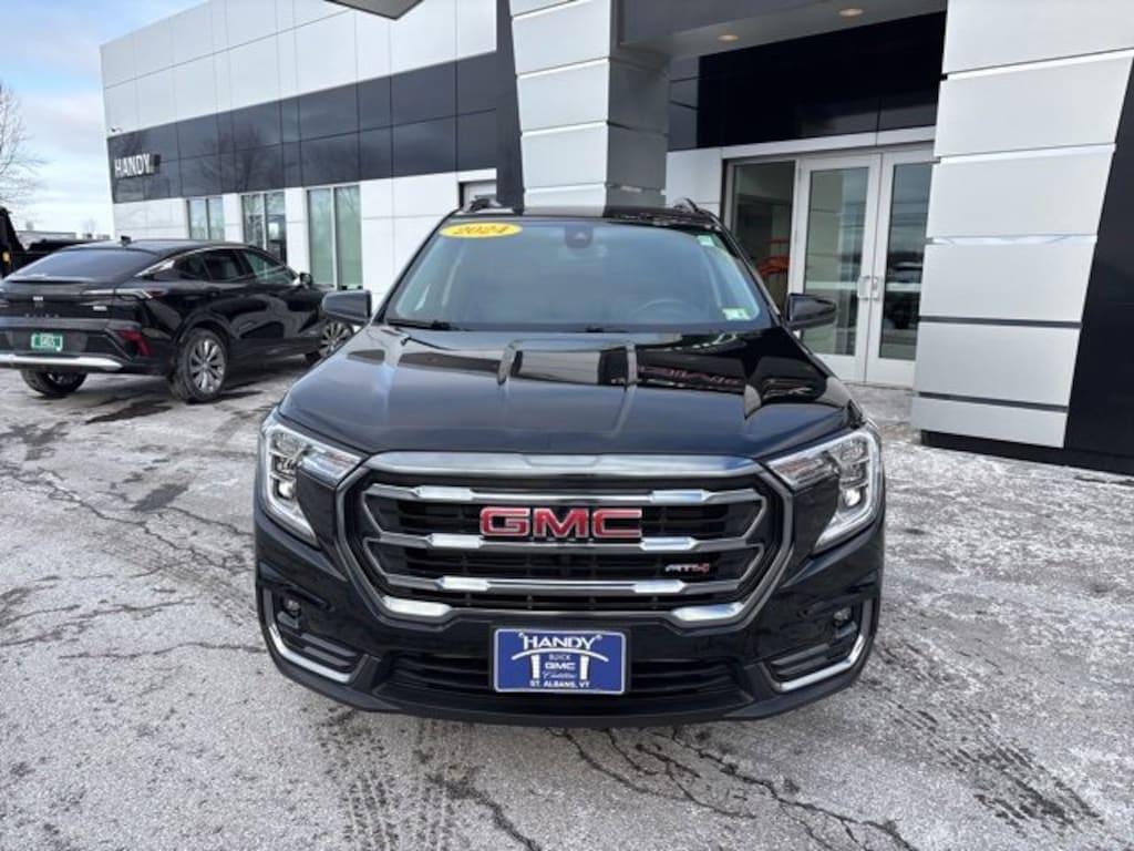 Odometer is 1099 miles below market average!CARFAX One-Owner. Clean CARFAX.Customer Trade In, AWD, 2 USB Data Ports, 2 USB Data Ports w/SD Card Reader, 6-Speaker Audio System Feature, 6-Way Power Front Passenger Seat, 8-Way Power Driver Seat Adjuster, Automatic temperature control, Bluetooth® For Phone, Four wheel independent suspension, Front fog lights, Fully automatic headlights, Heated door mirrors, Heated front seats, Heated steering wheel, Memory seat, Perforated Leather-Appointed Seat Trim w/AT4 Logo, Power door mirrors, Power Liftgate, Preferred Equipment Group 4SC, Radio: GMC Infotainment Audio System w/8 Display, Rear window defroster, Rear window wiper, Remote keyless entry, SiriusXM, Skyscape Power Sunroof w/Power Sunscreen, Steering wheel mounted audio controls, Wheels: 17 x 7 Gloss Black Aluminum, Wireless Apple CarPlay/Wireless Android Auto.*PASSED - Multi Point Safety & Mechanical Inspection. Qualifies for the remainder of factory warranty if applicable. *Included w/ purchase: 30 day Limited Comprehensive Warranty w/ a $100 deductible along w/ a 6 month/6,000 mile Limited Powertrain Warranty w/ a $250 deductible. *Free Vermont State Inspection as long as you own. *One free lube oil filter change. *All offers valid at Handy Buick GMC Cadillac only.2024 GMC Terrain AT4 Ebony Twilight Metallic AT4 4D Sport Utility AWD 9-Speed Automatic 1.5L DOHC 23/28 City/Highway MPGContact Handy Buick GMC for details on this vehicle today! Reach out to us at 802-524-4615, speak with one of our customer friendly purchase and leasing consultants to schedule the test drive of your next NEW or PRE-OWNED vehicle!