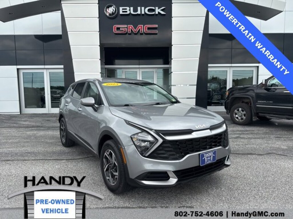 CARFAX One-Owner. Clean CARFAX.Customer Trade In, AWD, Air Conditioning, Alloy wheels, Cloth Seat Trim, Fully automatic headlights, Heated door mirrors, Heated front seats, Power door mirrors, Radio: AM/FM/HD Audio System, Rear window defroster, Rear window wiper, Remote keyless entry, Speed control, Steering wheel mounted audio controls.30-day Limited Warranty. Powertrain 1,000 miles. 50% deductible parts & labor.2023 Kia Sportage LX Steel Gray LX 4D Sport Utility AWD 8-Speed Automatic I4 23/28 City/Highway MPGContact Handy Buick GMC for details on this vehicle today! Reach out to us at 802-524-4615, speak with one of our customer friendly purchase and leasing consultants to schedule the test drive of your next NEW or PRE-OWNED vehicle!