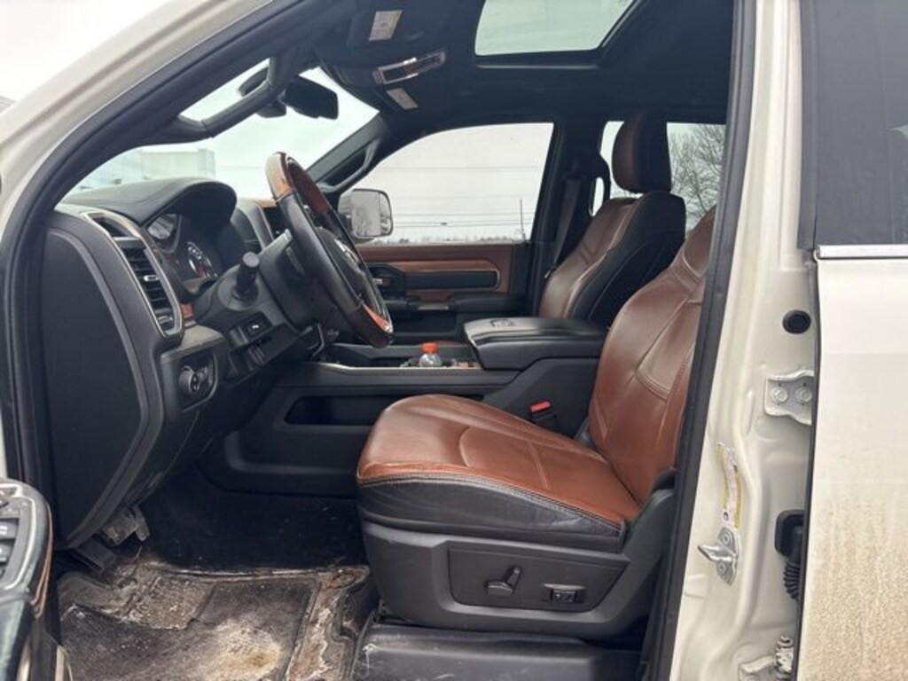Customer Trade In, 115V Auxiliary Rear Power Outlet, 12 Touchscreen Display, 17 Speaker harman kardon Premium Sound, 220 Amp Alternator, Apple CarPlay/Android Auto, Automatic temperature control, Blind Spot & Cross Path Detection, Front fog lights, Full Length Premium Upgraded Floor Console, Fully automatic headlights, GPS Navigation, Heated door mirrors, Heated Front Seats, Heated Second Row Seats, Heated Steering Wheel, I/P Mounted Auxiliary Switches, Integrated Voice Command w/Bluetooth, Longhorn Level 1 Equipment Group, Memory seat, ParkView Rear Back-Up Camera, Power door mirrors, Power driver seat, Power passenger seat, Power Sunroof, Premium Filigree Leather Seats, Quick Order Package 2HK Longhorn, Radio: Uconnect 5 Nav w/12.0 Display, Rain sensing wipers, Ramcharger Wireless Charging Pad, Rear window defroster, Selectable Tire Fill Alert, SiriusXM w/360L, Snow Chief Group, Ventilated Front Seats, Wheels: 18 x 8.0 Polished Aluminum (DISC).